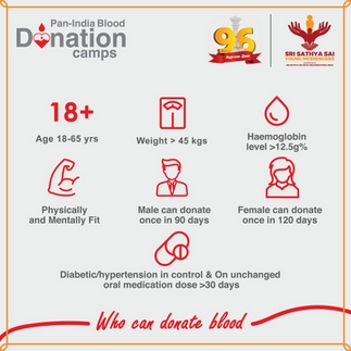 On the occasion of Bhagwan Baba's 96th Birthday, the Sri Sathya Sai Young Messengers (youth wing) under the aegis of Sri Sathya Sai Seva Organisations, India is organising more than 230 blood donation camps across India between 20th and 28th November 2021.
